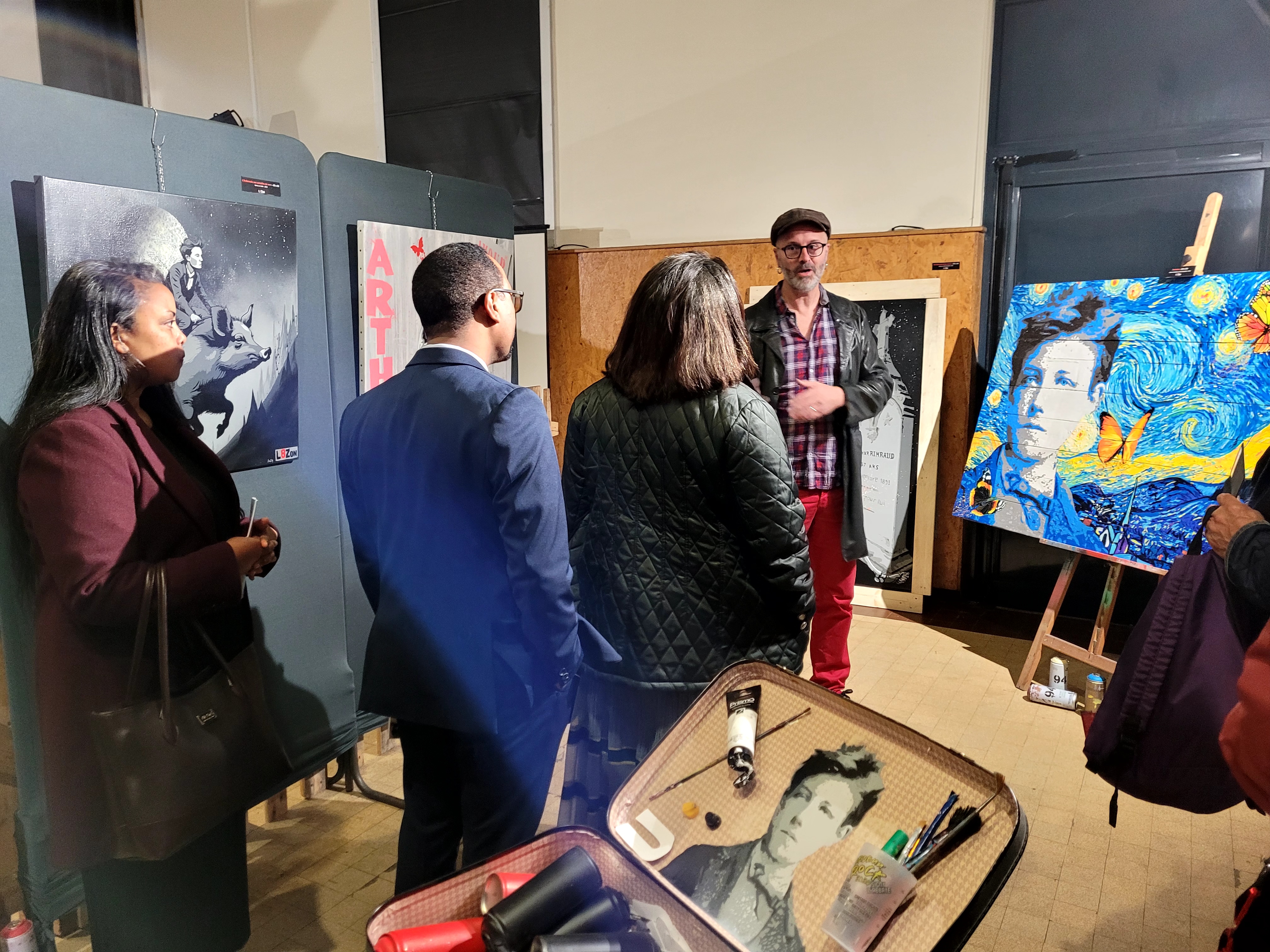Une visite en ce samedi 19 octobre qui commence par l’exposition installée place NEVERS constituée de différents portraits d’Arthur Rimbaud vu par l’artiste L8ZON.