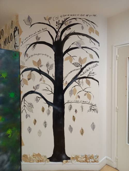 Après ce discours et dépôt de gerbe sous la statue de Rimbaud, nous nous rendons dans la rue Jean Jaurès. avec la délégation et l’ambassadeur pour inaugurer en présence du Maire la 19ème fresque sur un mur en hommage au poète , le titre « à la musique ».